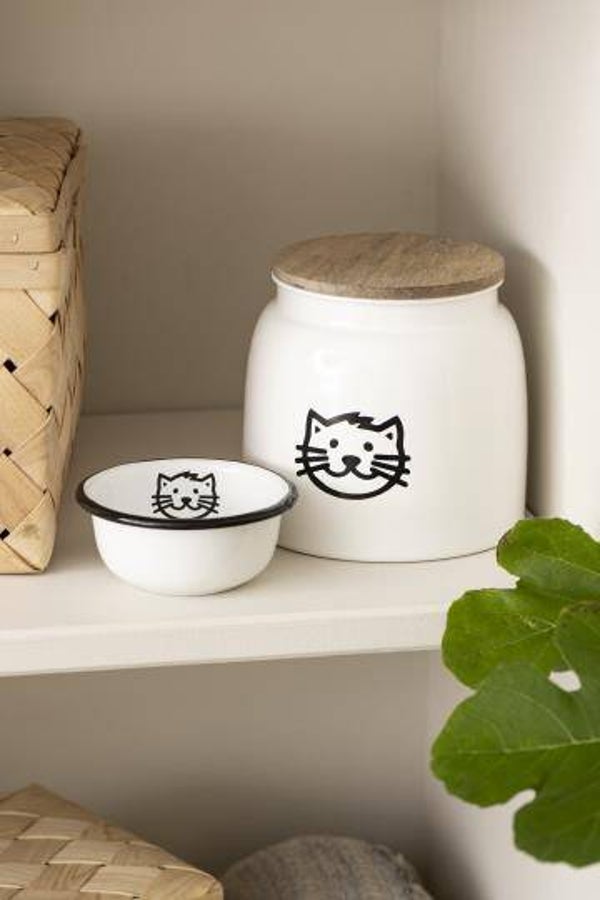 Ib-Laursen Canister for cat food white w/cat motif and wooden cover 2.2 ltr 04896-11.