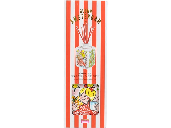 Breng niet alleen sfeer, maar ook een heerlijke kerstgeur in huis met de Geurstokjes Kerst van Blond Amsterdam. Deze vrolijke set geurstokjes verspreidt de geur waardoor je huis meteen wordt omgetoverd tot een gezellige kerstmarkt. Versierd met feestelijke illustraties zorgt deze set niet alleen voor een heerlijke geur, maar ook voor een vleugje kerstmagie in je interieur. Plaats de geurstokjes in de stijlvolle houder en laat de geur zich langzaam door je huis verspreiden. Perfect voor tijdens een kerstdiner, een gezellige avond met vrienden of gewoon om jezelf in de feeststemming te brengen. Dit is de perfecte aanvulling op je Blond Amsterdam kerstcollectie en een leuk cadeau voor kerstliefhebbers die van een knusse sfeer houden!