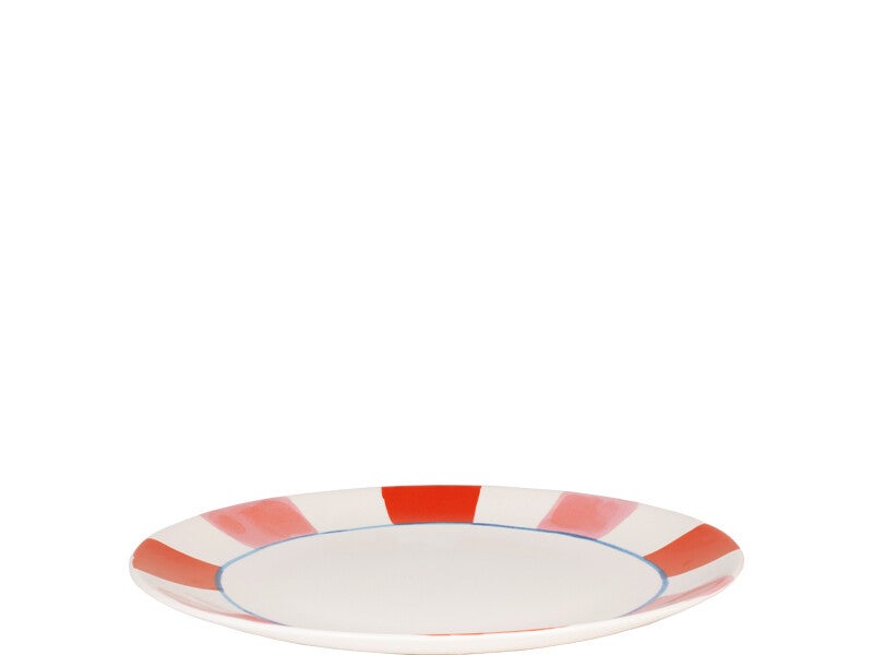 Met dit 26cm dinerbord uit de Even Bijkletsen, Everyday Stripes collectie zit je altijd goed. De handgeschilderde roze en rode strepen zorgen voor een rustige, frisse basis op tafel, zonder dat het saai wordt. Groot genoeg voor het avondeten, perfect voor feestelijke momenten of gewoon lekker doordeweeks gezellig. Deze collectie is ontworpen om eindeloos te combineren met al je favoriete Blond items. Mix & match, elke dag opnieuw. Every line, every time, everyday.
