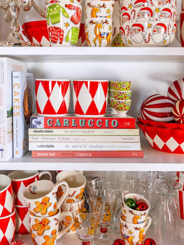 Een cappuccino in de ochtend of een warme choco na een winterwandeling, met deze opvallende beker uit de kerstcollectie van Blond Amsterdam wordt het altijd een genietmoment. Deze grote cappuccinobeker (0.5L) is ideaal voor de feestdagen maar zeker ook voor elke dag daarna. Hij vormt een sterk duo met de Gingerbread of Christmastree items uit de collectie. Of mix en match hem juist met je favoriete servies uit andere Blond collecties.