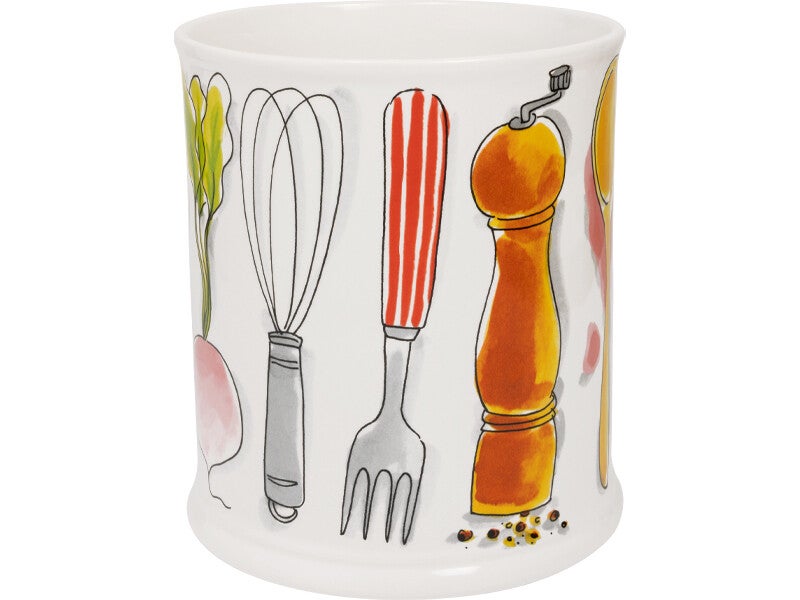 Sta je weer met een pollepel in de ene hand en een garde in de andere, terwijl je probeert het deksel van de pastasaus open te krijgen? Tijd voor wat orde in de keukenchaos. Deze vrolijke pollepelpot van keramiek uit de Even Bijkletsen collectie van Blond Amsterdam is jouw stille keukenhulp. Met kleurrijke illustraties van al je keukenvrienden, van tomaat tot pepermolen, is hij niet alleen praktisch, maar ook een feestje om naar te kijken. Of je nou gaat voor een snelle doordeweekse hap of een uitgebreide kooksessie op zondag, deze pot houdt al je tools bij de hand. En eerlijk is eerlijk: zelfs als je geen keukenprins(es) bent, voel je je met deze pot toch een tikkeltje meer ‘chef at home’. Ontdek meer items van Blond Amsterdam.