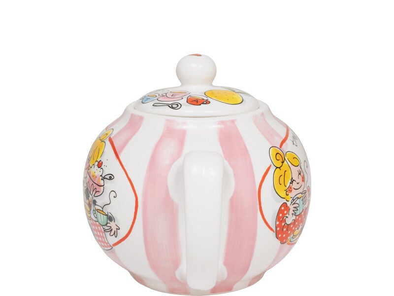 Sommige dagen vragen gewoon om thee. Veel thee. In een mooie pot natuurlijk. Deze ronde theepot uit de Even Bijkletsen collectie van Blond Amsterdam is er zo eentje waar je blij van wordt zodra je hem op tafel zet. Een zachtroze streepje hier, een Blond illustratie daar… en in sierlijke letters een boodschap om te bewaren: You're my cup of tea. Combineer hem het het theelichtje en het theeblik uit de collectie. Tea is always a good idea. Especially like this.