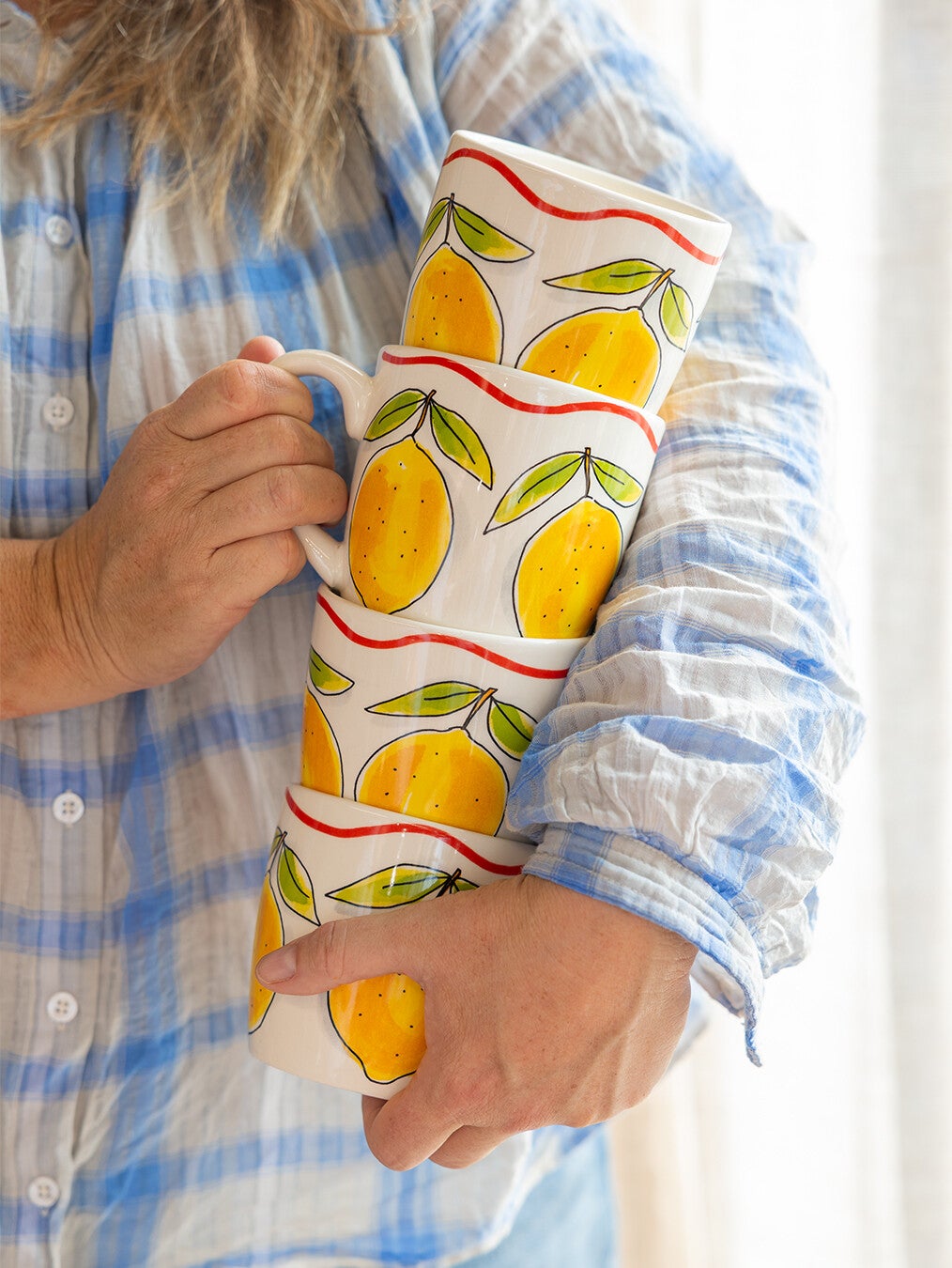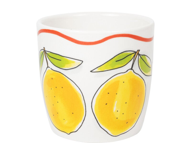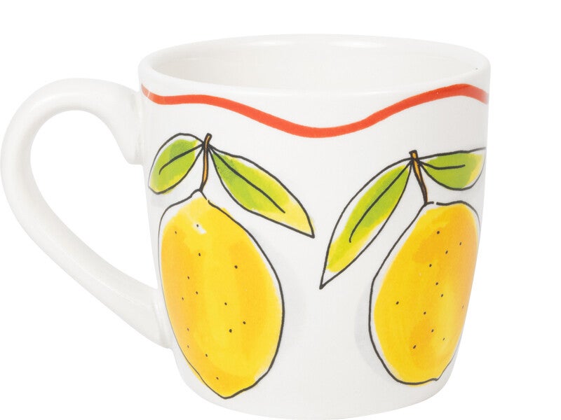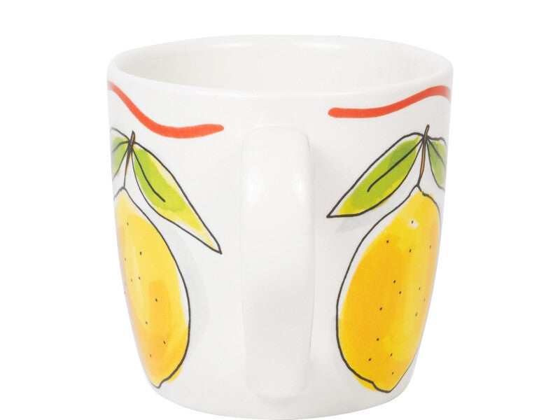 Een cappuccino smaakt nóg beter uit deze grote mok uit de Blond Amsterdam Pasta collectie. De frisse citroenen geven de mok een zonnige en Italiaanse uitstraling. Perfect voor een ontspannen koffiemoment. Met een inhoud van 0,5 liter is deze mok ideaal voor cappuccino, latte, thee of een warme chocolademelk. Groot, gezellig en heerlijk comfortabel om vast te houden. De vrolijke citroenen brengen meteen een zomerse sfeer in huis. Combineer de mok met het andere servies uit de Pasta collectie en geniet van een klein Italiaans koffiemoment bij je thuis. Laat dit product personaliseren met een naam of boodschap in ons atelier en maak er een echt persoonlijk cadeau van. Houd bij personalisatie rekening met een iets langere levertijd. Om de kwaliteit van de opdruk te behouden, raden we aan om de keramische producten met de hand af te wassen. Je kunt het servies in de magnetron gebruiken, maar het kan snel warm worden. Niet geschikt voor in de oven.