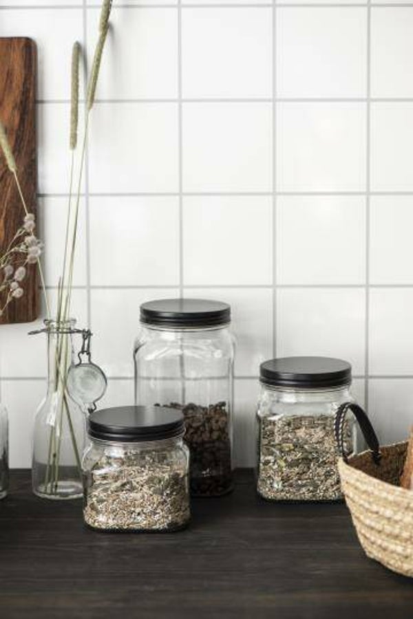 Ib-laursen Glass jar w/black lid square 700 ml 0654-24